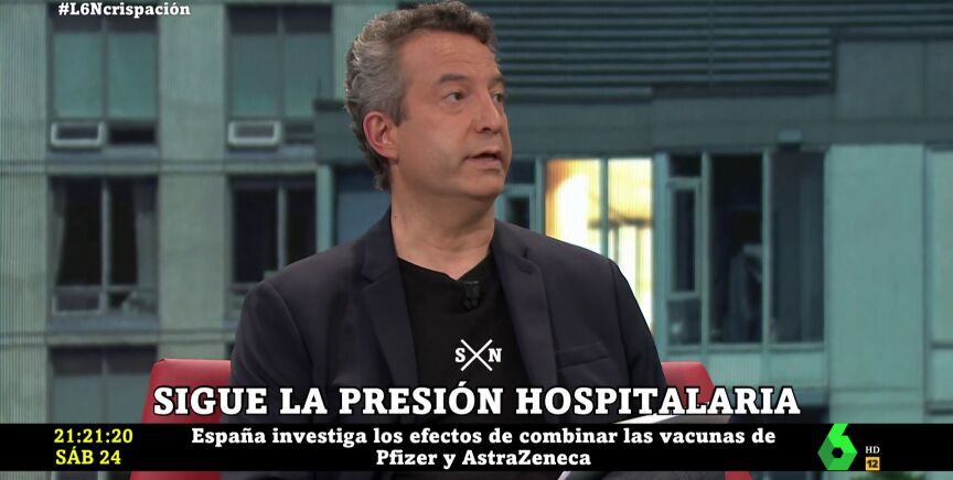 El doctor César Carballo confirma que ha bajado la edad de los pacientes con coronavirus que llegan a los hospitales. "Ayer estuve hasta las 22:00 de la noche trabajando en el hospital y lo que vimos no nos gustó nada", advierte el facultativo, médico de Urgencias en el Ramón y Cajal de Madrid, en laSexta Noche.