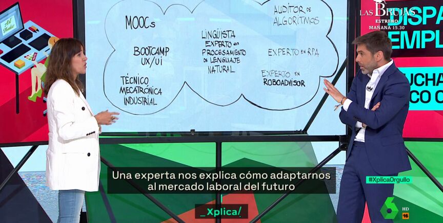 La inteligencia artificial ha abierto un nuevo panorama en la sociedad en general y en el mercado laboral en particular. Para explicarnos las claves de los trabajos que podemos encontrar a partir de ahora y que pueden tener futuro, Elena Ibáñez, fundadora de Singularity Experts, saca la pizarra y nos da una clase magistral.