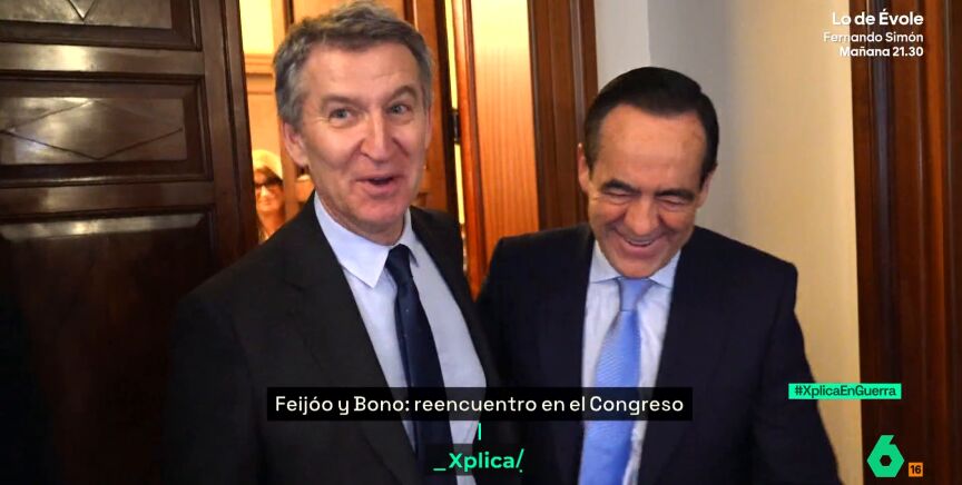 Las casualidades existen y es lo que se ha vivido en laSexta Xplica. Mientras José Yélamo, presentador del programa, charlaba con José Bono en el Congreso de los Diputados, el exministro de Defensa habló de muchos temas. Y cuando valoró la actuación de la oposición, liderada por Alberto Núñez Feijóo, precisamente el líder 'popular' estaba en una sala contigua escuchando hablar de él a Bono.