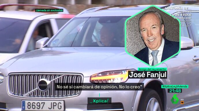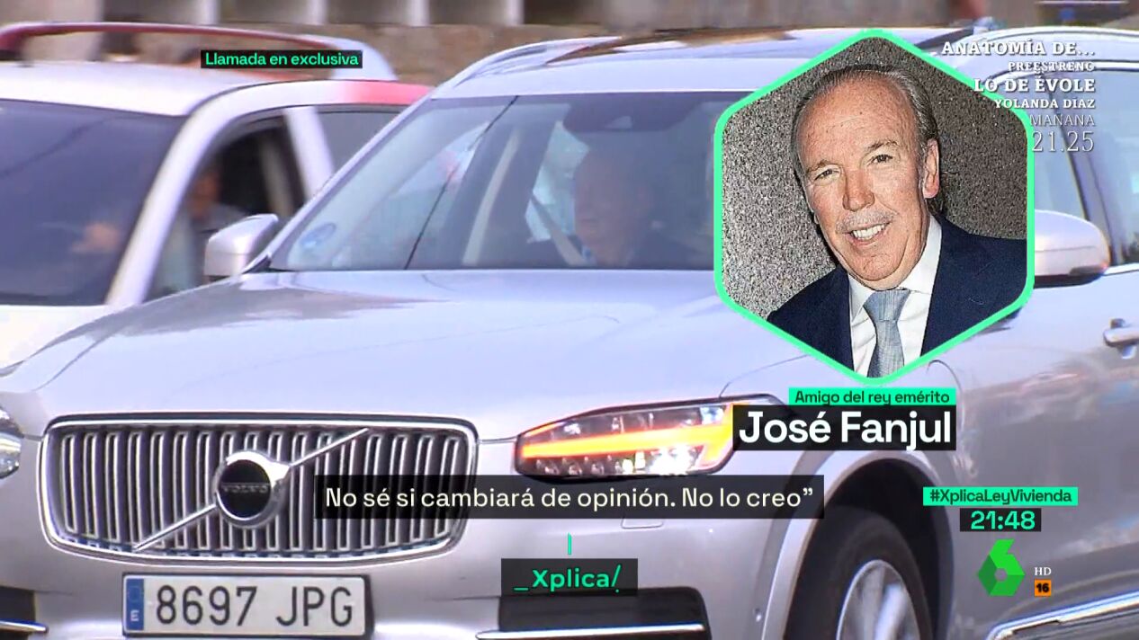 En laSexta Xplica hablaron en exclusiva con José Fanjul, amigo del rey emérito, quien habló sobre la visita de Juan Carlos I a Sanxenxo. "Que yo sepa, solo va a Sanxenxo. No sé si cambiará de opinión, pero no lo creo", expresó, respondiendo así a si cree que el monarca va a ir a visitar a su hijo, el rey Felipe VI, a Zarzuela.