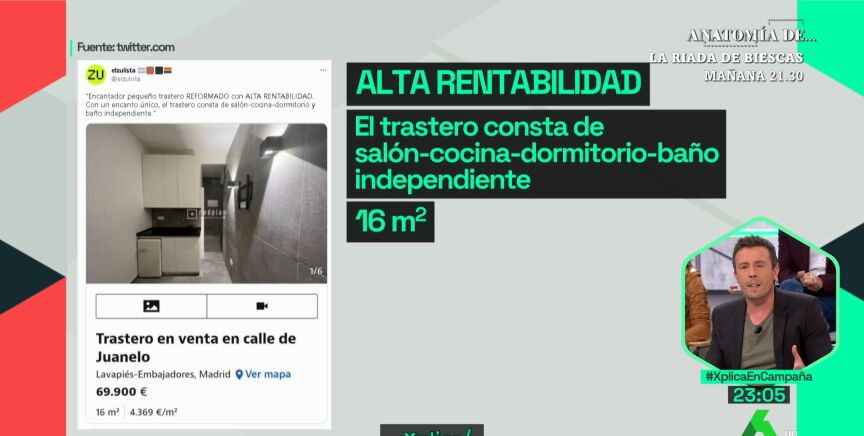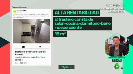 Entre los anuncios de venta es posible encontrar un trastero de 16 metros con salón-cocina-dormitorio que ofertan como habitáculo con "una alta rentabilidad".