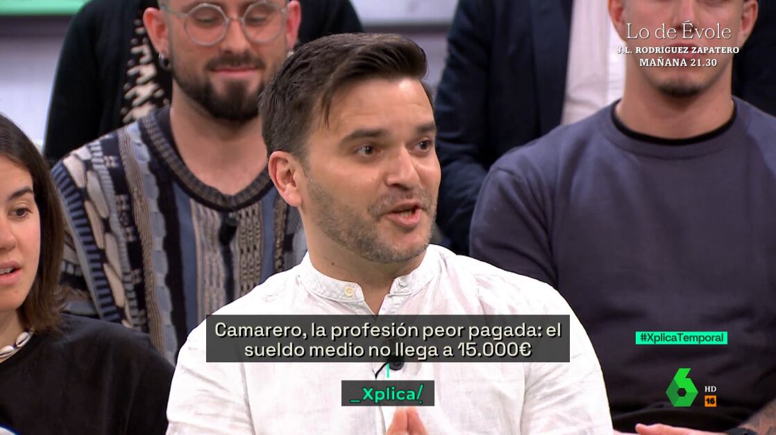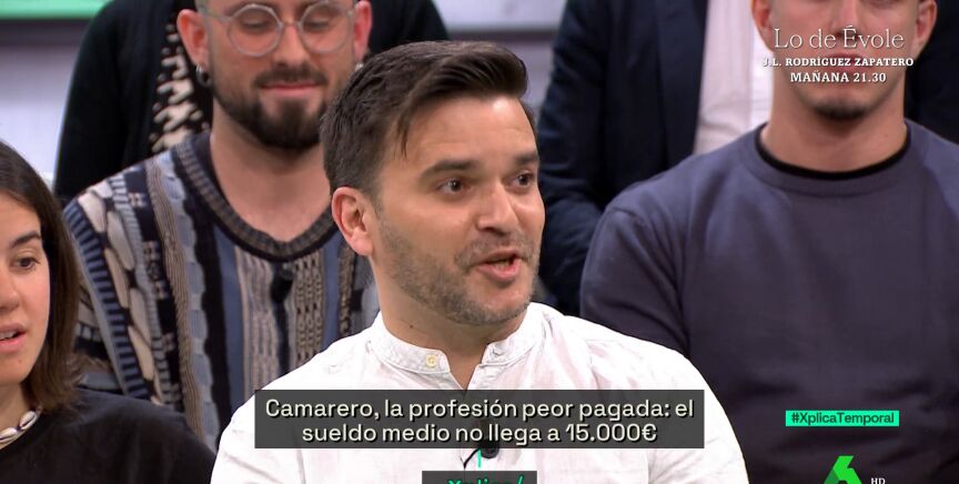 Jesús Soriano, la persona detrás del perfil en redes sociales de 'Soy camarero', ha dicho a los empresarios este sábado en laSexta Xplica que si quieren "camareros profesionales, que le paguen", porque lo que no puede ser es que lo tengan con contratos de "ayudante de camarero".