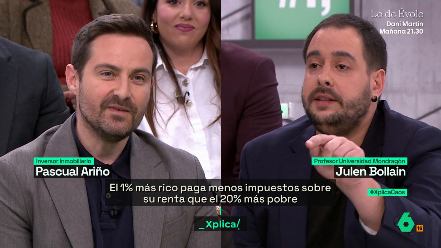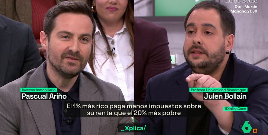 Julen Bollain ha protagonizado un tenso debate sobre los impuestos con Pascual Ariño, un empresario que ha decidido irse a Andorra para pagar menos impuestos. "Los ricos que se pueden ir allí están en su derecho, pero son unos auténticos insolidarios con sus compañeros", ha asegurado.