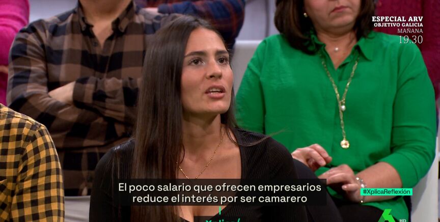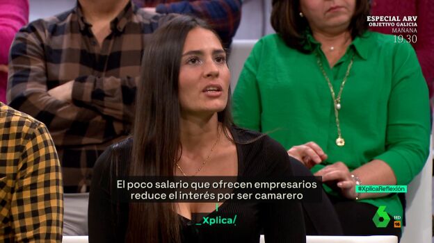 Laia Merino es una camarera de 27 años que trabaja en una discoteca de Barcelona y acude a laSexta Xplica para denunciar las condiciones laborales que viven los empleados de la hostelería que, como asegura, se han acostumbrado a que les paguen en "negro". "Al final es a lo que nos exponemos", opina.