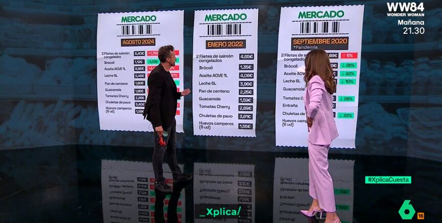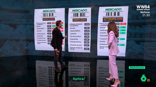 Los elevados precios de los alimentos en España han llevado a Antonio Pérez Lobato, colaborador de laSexta Xplica, a guardar los tickets de la compra de un año para otro. En esta ocasión, el periodista ha analizado sus tickets de septiembre de 2020, enero de 2022 y agosto de 2024.