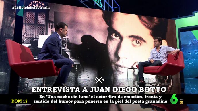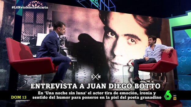 El actor y director Juan Diego Botto tira de emoción, ironía y sentido del humor para ponerse en al piel de Lorca en 'Una noche sin luna', espectáculo sobre el que ha hablado en laSexta Noche al tiempo que ha reivindicado la figura del artista granadino.