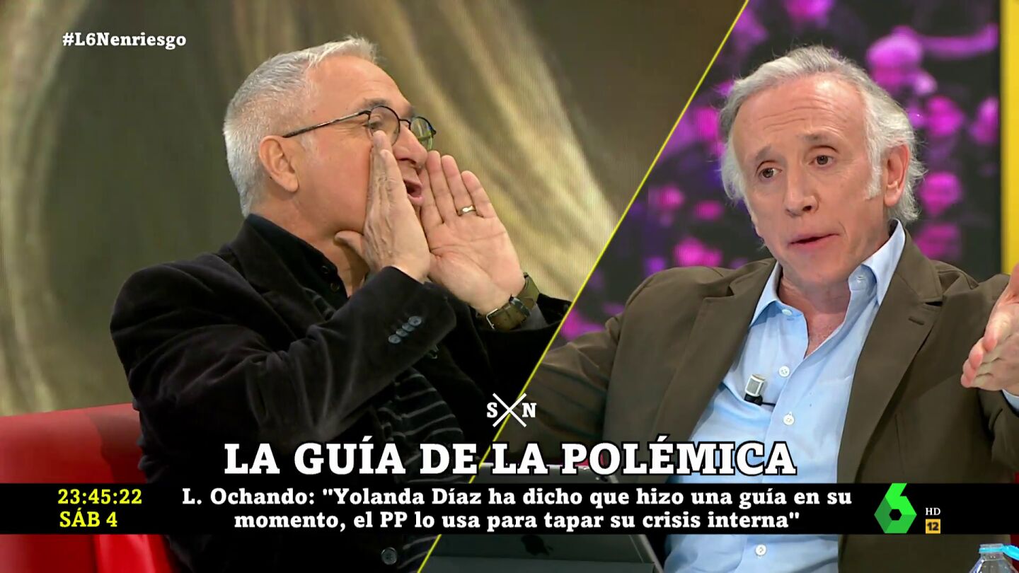 Xavier Sardà, Eduardo Inda o Loreto Ochando han chocado de manera fuerte acerca de lo que suponen estas palabras, un tenso debate del que llega a salir hasta un 'Gobierno alternativo', con Ochando comoo 'Ministra de Justicia' o Inda como 'Ministro de Sanidad'.