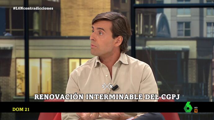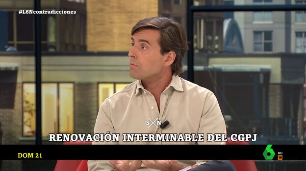 Además, Montesinos aprovechó su intervención en laSexta Noche para mandar un mensaje al Gobierno: "Que no intenten utilizar mis palabras en sus rifirrafes con el PP, que bastante tienen ellos y bastante tengo yo también; que el Gobierno y PP se centren si quieren en intentar desbloquear la negociación del CGPJ".