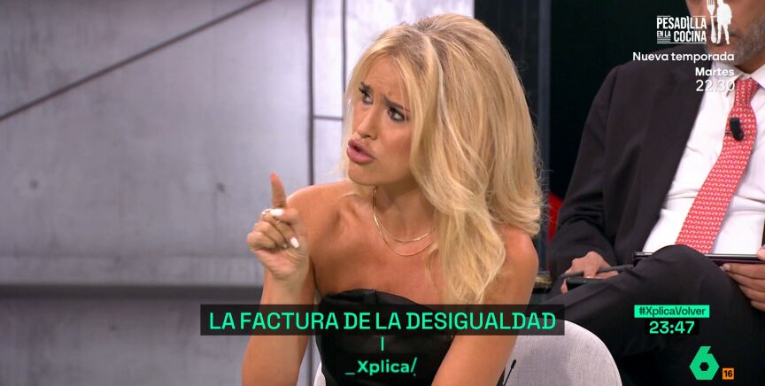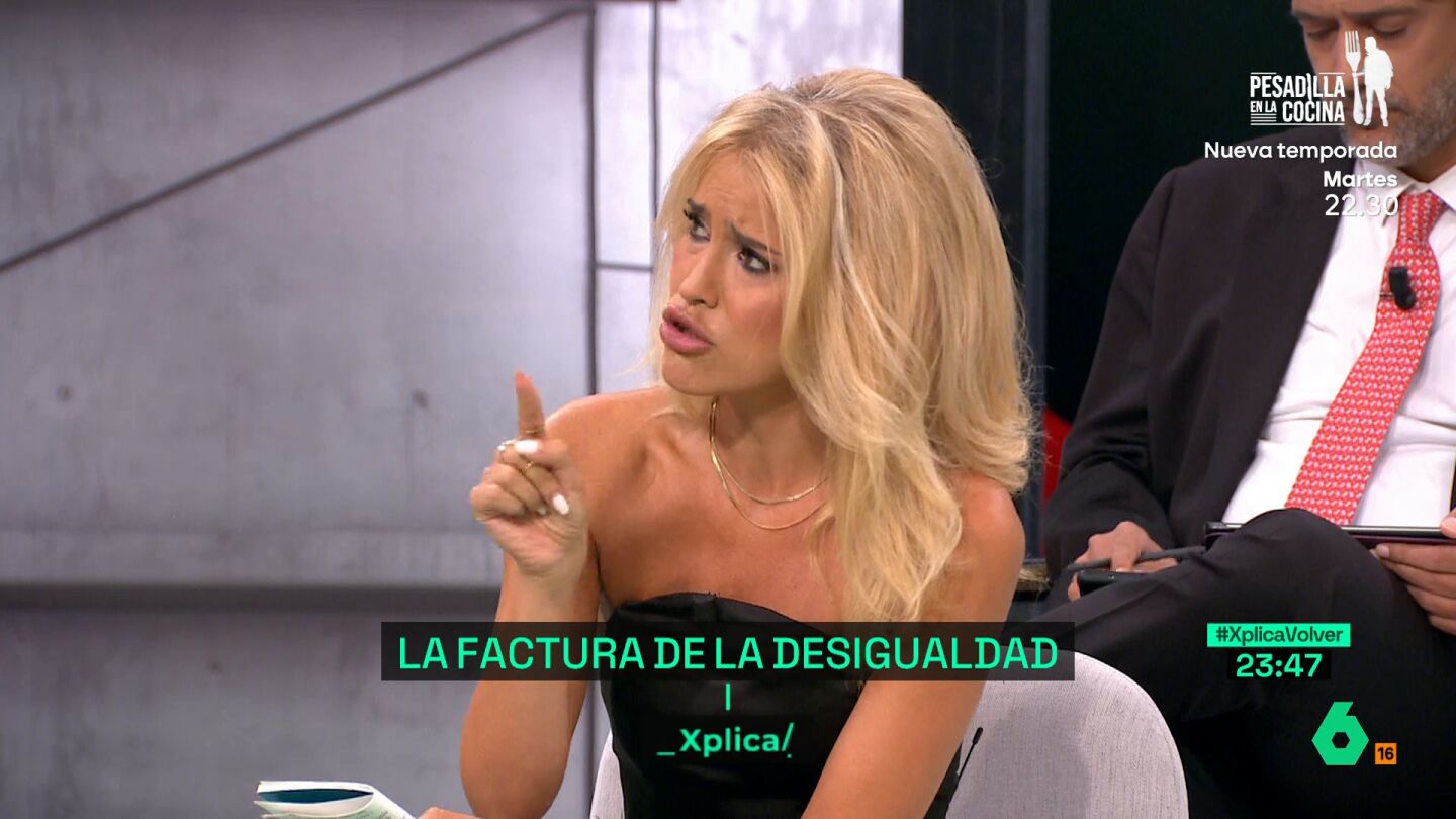 Afra Blanco comenta en laSexta Xplica lo "bien que les va" a algunos empresarios que cuentan con amplios márgenes de beneficio, pasando a comentar que es la generación de "nuestros padres" quien puede tener la solución al problema de la vivienda, ya que tienen "esos pisos que ahora están alquilando".