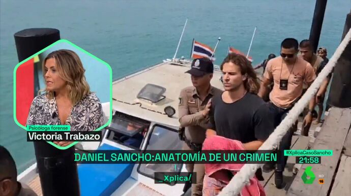 Victoria Trabazo, psicóloga forense, ha dado su opinión en laSexta Xplica sobre Daniel Sancho, destacando que "no se ha podido hacer una entrevista diagnóstica, unos cuestionarios apropiados, y tampoco hay muchos más datos en la historia, pero llama la atención por el tipo de crimen y cómo se ha desarrollado todo".