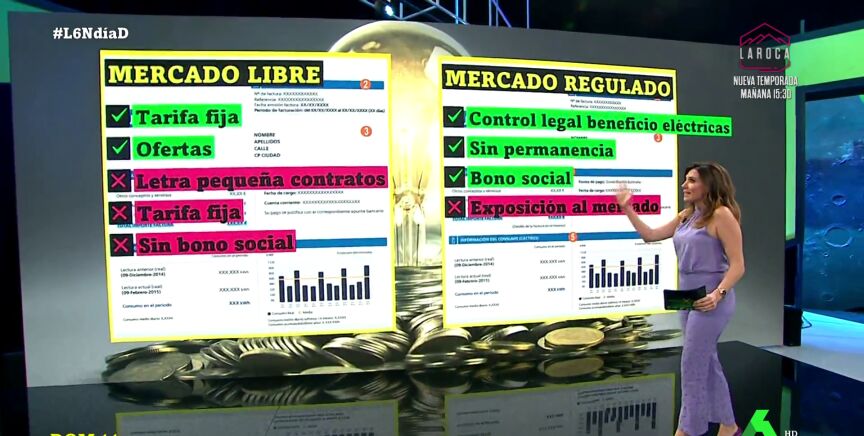 ¿Qué podemos hacer para pagar menos en nuestra factura de la luz? La periodista Verónica Sanz analiza en laSexta Noche las ventajas e inconvenientes de los dos mercados en los que los usuarios podemos contratar las tarifas.