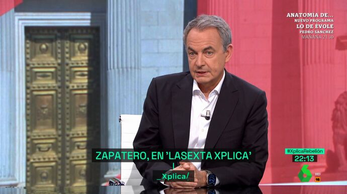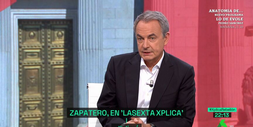 El expresidente del Gobierno José Luis Rodríguez Zapatero ha criticado en laSexta Xplica que el "'sanchismo' es un burbuja totalmente infundada y falsa", al tiempo que ha defendido la labor de Pedro Sánchez al frente del Ejecutivo. "Tenemos un presidente sin tacha, honesto. No ha habido un escándalo en torno a su gobierno, después de lo que arrastramos años atrás", ha destacado.
