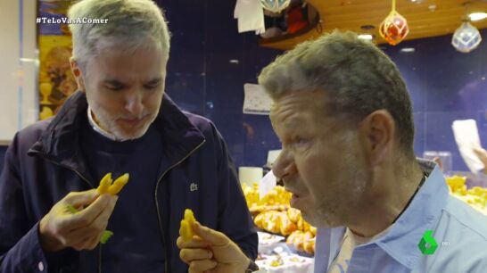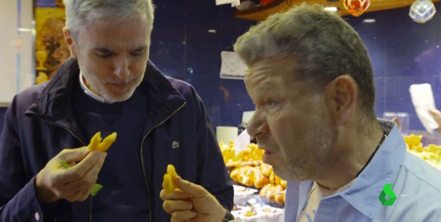 Alberto Chicote y Mikel López Iturriaga prueban los fritos del mercado de La Boquería de Barcelona: "Es chicle de calamar"