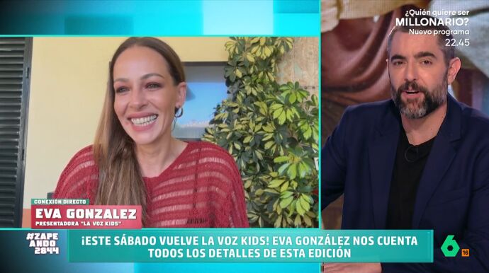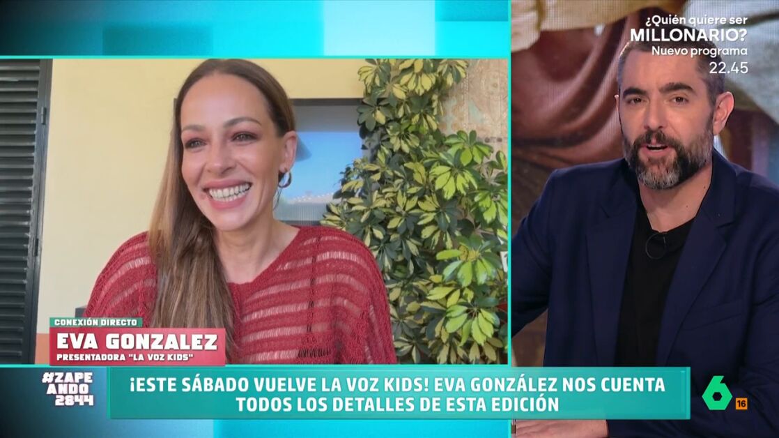 Eva González se conecta en directo con Zapeando para hablar de la nueva temporada de 'La Voz Kids', que arranca este sábado. Puedes conocer todos los detalles y novedades del programa en el vídeo principal de esta noticia.