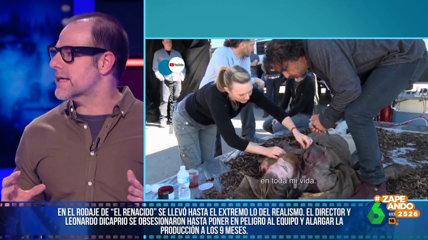El rodaje fue muy duro. Como expone Alberto, DiCaprio afirmó que fue uno de los peores rodajes de su vida. "Tenía que entrar y salir de ríos congelados, meterse dentro del cuerpo de un animal muerto...", argumenta el periodista. Su director, Alejandro González Iñárritu, "no cree en el cine digital, cree que el cine es más real cuanto más muestra la realidad", explica Rey. Esto obligó al actor, por ejemplo, soportar temperaturas de 30 grados bajo cero o incluso comerse el hígado crudo de un bisonte.