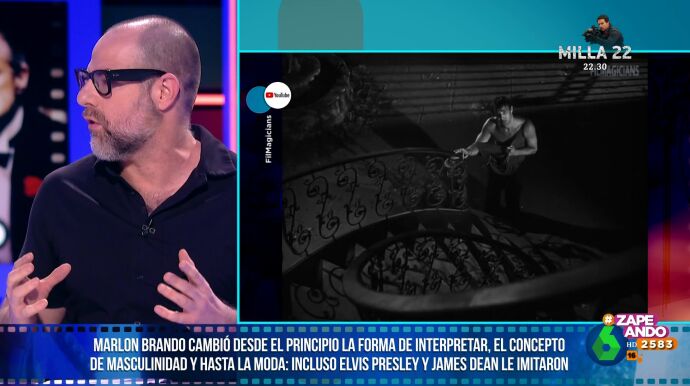 Alberto Rey, periodista experto en cine, visita Zapeando para hablar del actor Marlon Brando. Este mítico interprete habría cumplido 100 años este mes. Su figura genera opiniones diversas ya que, como afirma Dani Mateo, "para muchos es el mejor actor de la historia", pero otras personas se centran en los continuos problemas que ocasionaba en los rodajes.