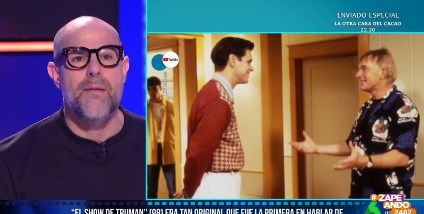 Alberto Rey visita Zapeando para repasar algunas de las películas que tratan sobre el mundo de la televisión. Una de las más míticas es 'El show de Truman', pues la cinta protagonizada por Jim Carrey, además de ser "un peliculón, fue bastante visionaria", comenta Quique Peinado, hasta el punto de que fue considerada una película de ciencia ficción mientras que hoy sería "una sátira", expone el crítico.