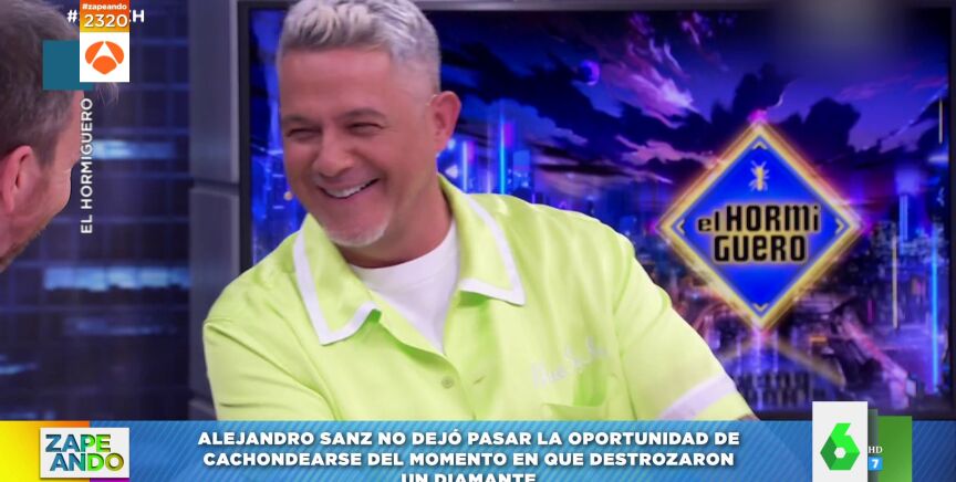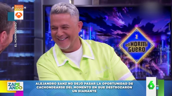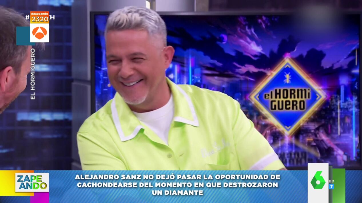 Alejandro Sanz no dejó pasar la oportunidad de cachondearse del momento en el que destrozaron un diamante en El Hormiguero ante la atenta mirada de Georgina Rodríguez. Este es el divertido vacile que tiene con Pablo Motos.