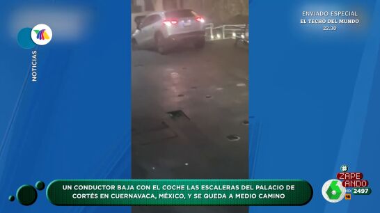 Un conductor "lleva hasta el extremo lo de ir a todos lados en coche", comenta Valeria Ros. El suceso ha ocurrido en Cuernavaca, México, donde un hombre, presuntamente en estado de embriaguez, en "un arrebato creativo", dice la presentadora, decidió volver a casa por un camino poco transitado para los vehículos.