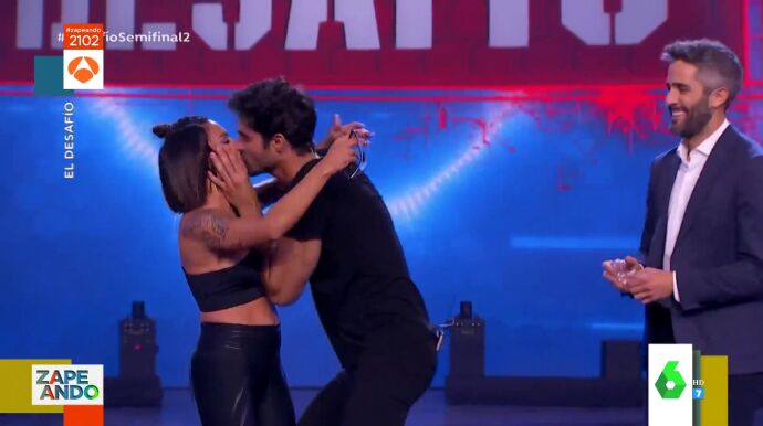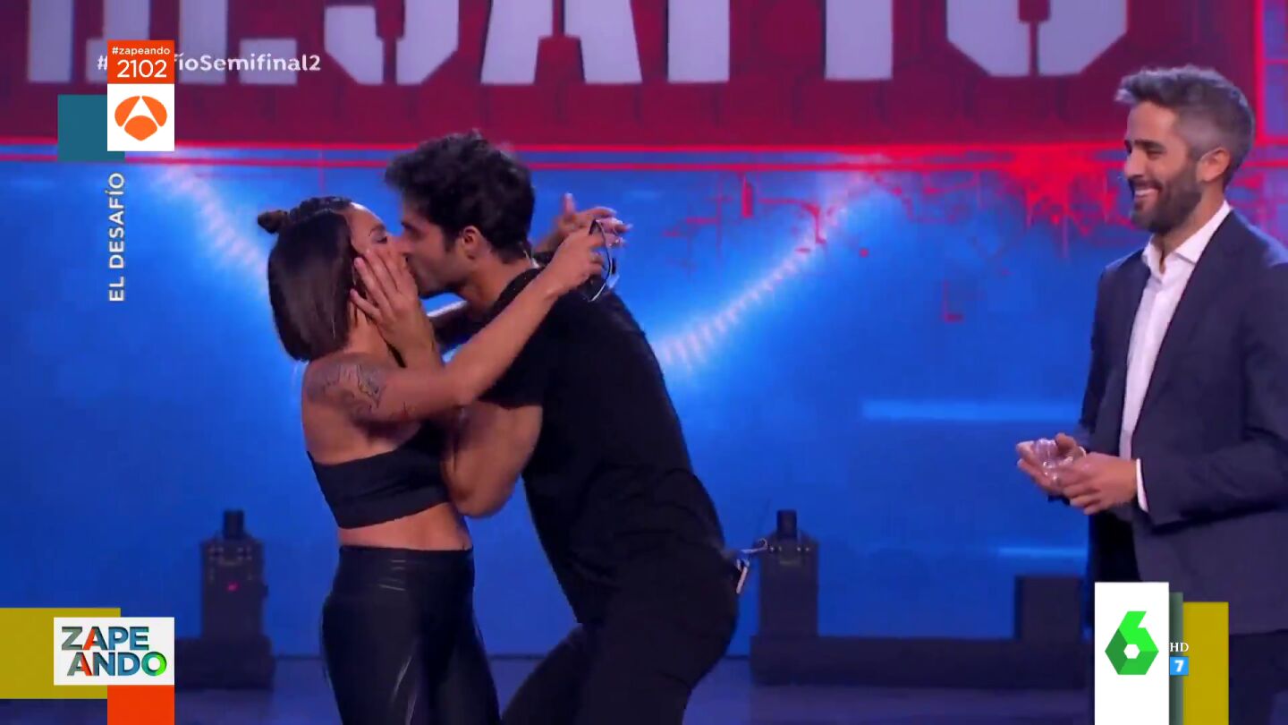 Lorena Castell y Juan Betancourt protagonizan en este vídeo el momento más hot de 'El Desafío' cuando el modelo besa a la zapeadora por sorpresa.
