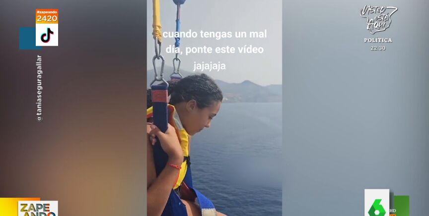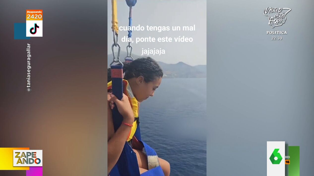 El ataque de pánico de una niña que confunde unos delfines con tiburones mientras practica parakiting