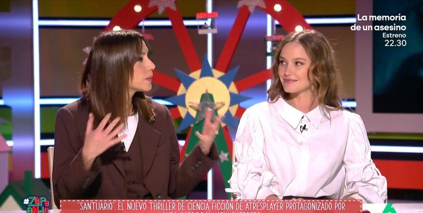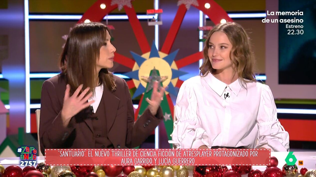 Aura Garrido y Lucía Guerrero visitan el plató de Zapeando para hablar de su nueva serie, 'Santuario', ya disponible en Atresplayer. El argumento de esta serie se basa en un futuro donde, tras un desastre climático, las mujeres se ven obligadas a pasar sus embarazos en una enorme cúpula diseñada para protegerlas de la contaminación y evitar que enfermen.