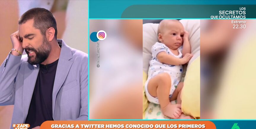 Quique, por su parte, muestras las imágenes de otro bebé con la cara completamente roja y una expresión de concentración máxima. "Es una olla exprés de niño", afirma el zapeador. "Que está haciendo caca es evidente", añade. El siguiente, más bien, tiene tiene cara de sorprendido. "También pondría esa cara, lo han envuelto que parece un durum", afirma Dani Mateo.