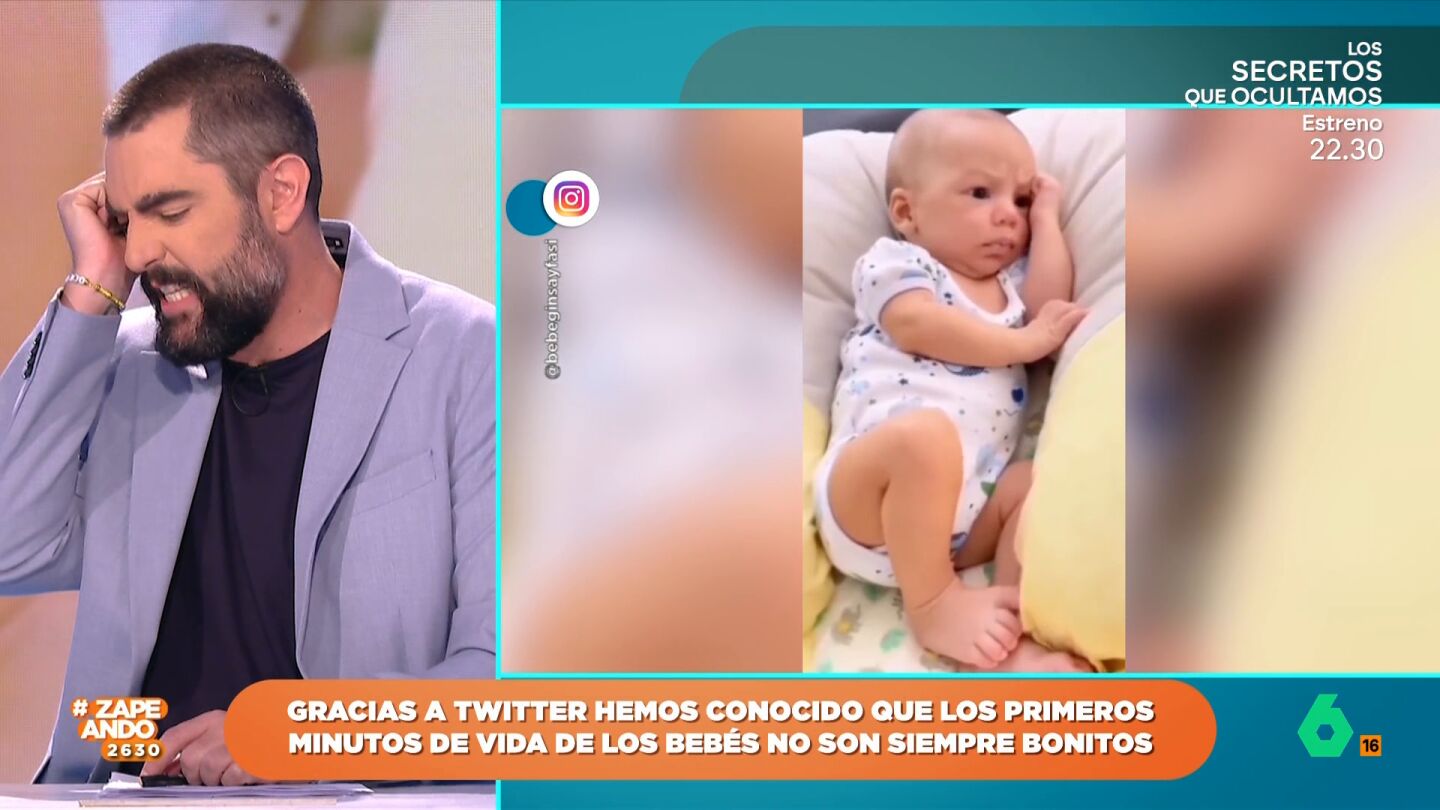 "Los bebés son una cosa maravillosa pero luego crecen", afirma Dani Mateo. Pero, a pesar de ser tan adorables, "hay bebés que llevan pocos minutos en este mundo y, los tíos, ya se les ve que la vida se les queda grande, que están cansados", argumenta Isabel Forner. Y, para demostrarlo, expone varios vídeos que han sido publicados en redes sociales.