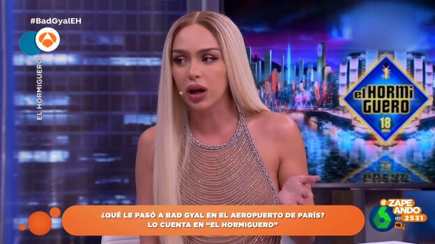 La artista Bad Gyal ha visitado 'El Hormiguero' para hablar de sus últimos proyectos. La cantante catalana, además, ha contado una curiosa anécdota que vivió en el aeropuerto de París al finalizar la Semana de la Moda parisina.