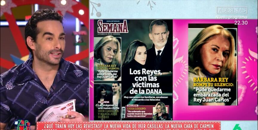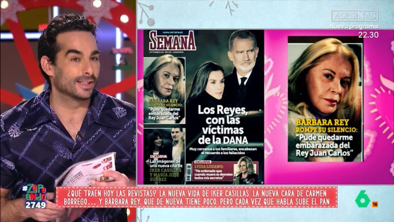 Juan Sanguino visita Zapeando para analizar la reveladora portada de Bárbara Rey, donde la exvedette comparte detalles de su relación con el rey emérito Juan Carlos, incluyendo su polémica declaración sobre un posible embarazo.