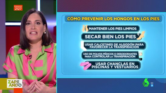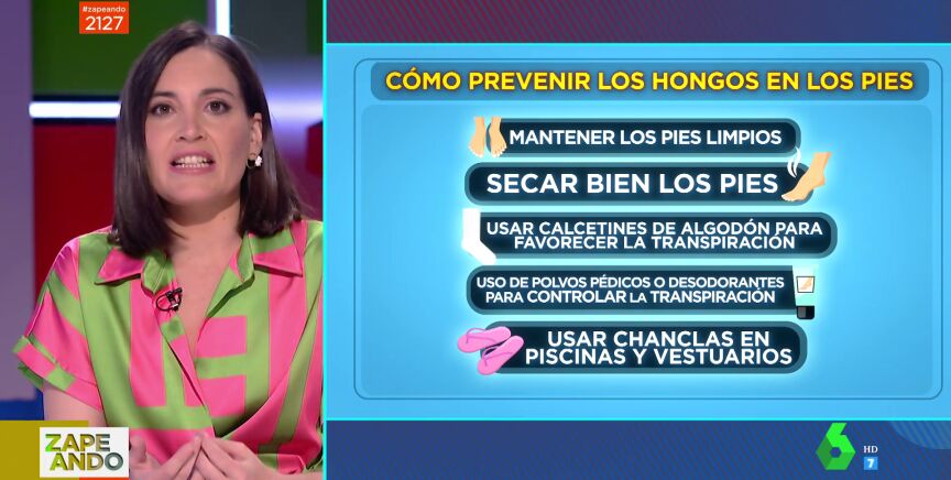 Boticaria García visita el plató de Zapeando para explicar las claves de lo hongos. En concreto, cómo se evita sufrir hongos en los pies. La experta lo tiene claro, antes que nada, "tener los pies limpios": "Hay asegurarse de que los pies estén secos y tener calcetines de algodón que favorezcan la respiración".