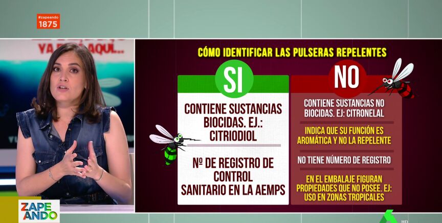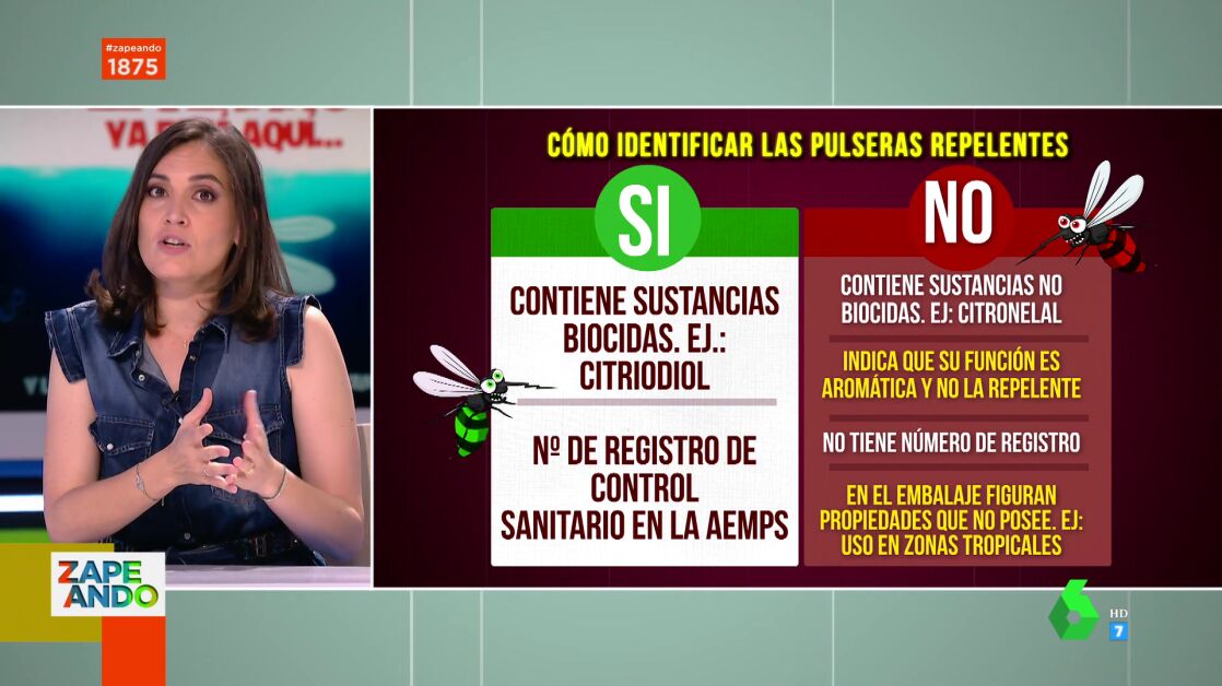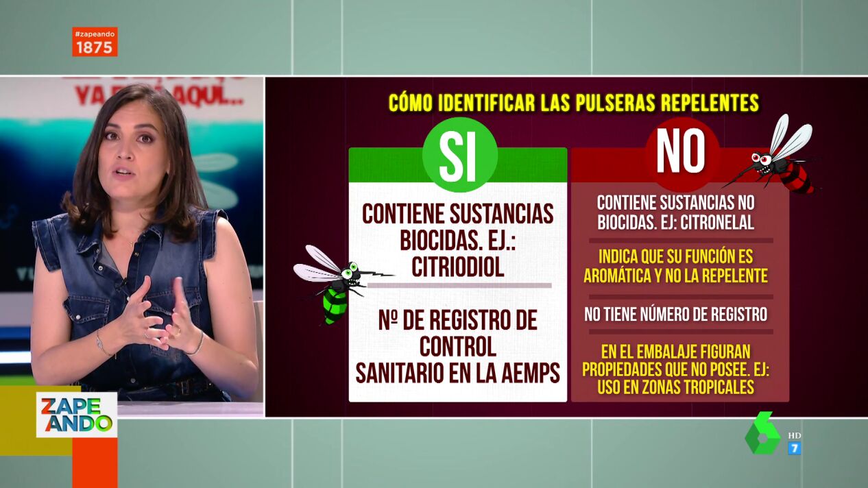 En cuanto a los ingredientes que deben de contener, el mejor de todos es el DEET, que interfiere con los receptores de las antenas de los mosquitos y hace que no se posen en tu piel. Pero lo principal es mirar en el envase, ver para qué está recomendado, para qué edad puede usarse y las indicaciones de cada cuánto tiempo tienes que echártelo. Además de estos repelentes existen otros naturales como el citriodiol, o las pulseras. Puedes saber cuáles sí y cuáles no funcionan en el vídeo que acompaña esta noticia.