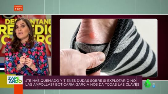 Boticaria García visita el plató de Zapeando para hablar de los remedios caseros, muchos de los cuales no son tan beneficiosos como se dicen. La experta explica qué hay que hacer cuando salen ampollas: ¿de verdad se pueden explotar?