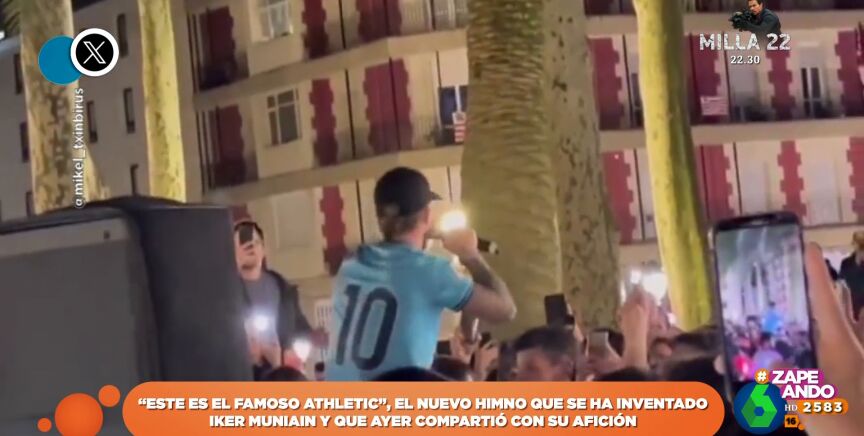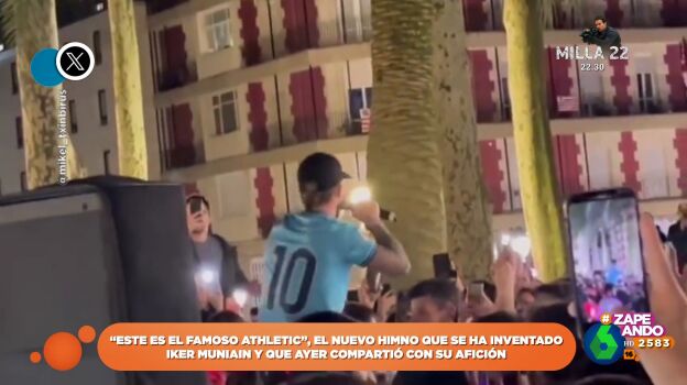 Los jugadores del Athletic han decidido hacer una celebración previa por las calles de Bilbao y, como cuenta Isabel Forner, "montaron una verbena junto a sus aficionados". Y el rey de la fiesta fue Iker Muniain que, cómo se ve en las imágenes, ha compartido con al afición una canción inventada por ellos. El tema dice cosas como "este es el famoso Athletic" o "estos son los campeones, aupa Athletic txapeldun".