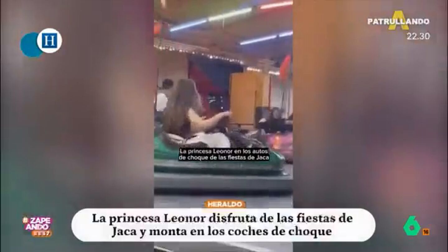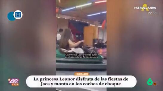 Tras acabar el año en la Academia Militar de Zaragoza, la princesa Leonor disfruta con sus amigos de los coches de choque en Jaca, primera parada de unas vacaciones que todavía no tiene definidas. El análisis de Zapeando, en este vídeo.