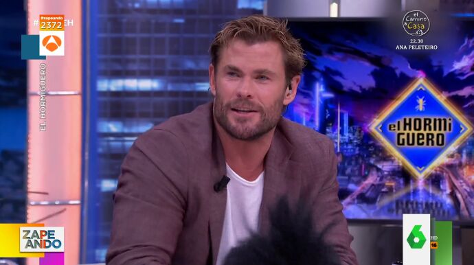 Chris Hemsworthvisita 'El Hormiguero' para presentar su nueva película 'Tyler Rake 2', que se estrena la próxima semana en Netflix. Pablo Motos le pregunta por su español y el actor aclara que su mujer, Elsa Pataky, le enseña pero le confiesa cómo suena en su cabeza.