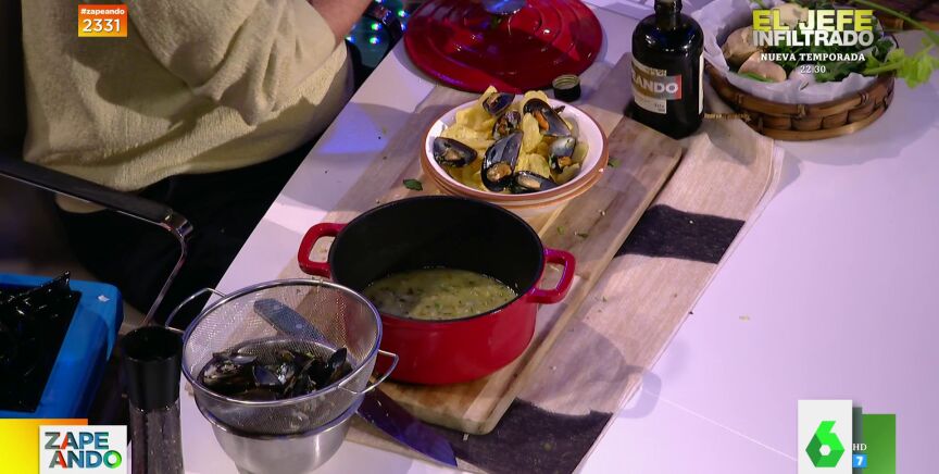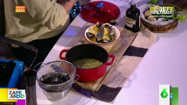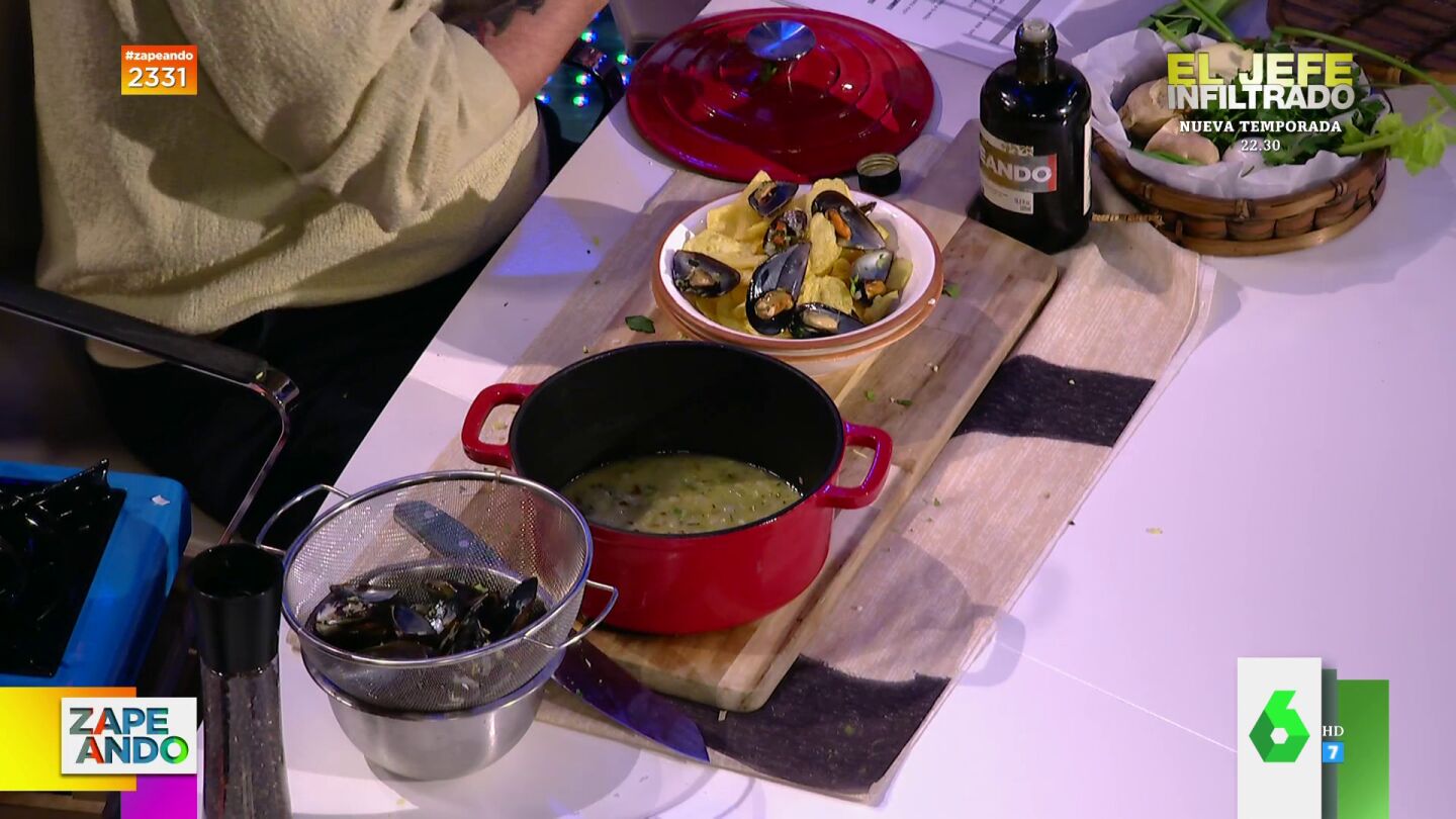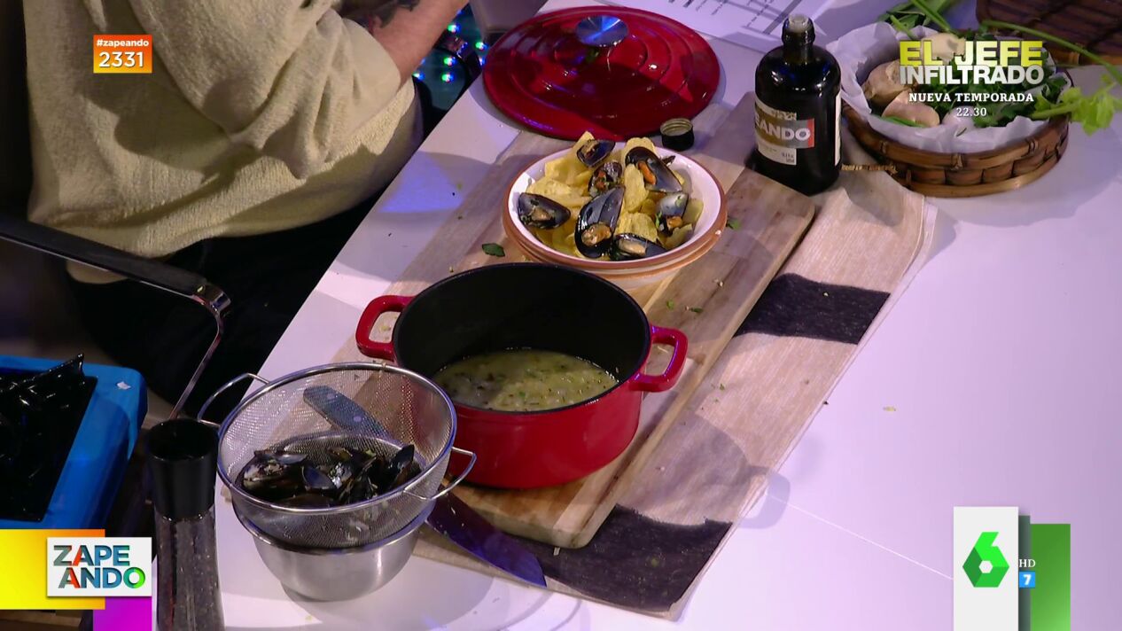 Gipsy Chefvisita el plató de Zapeando para hacer un "soble sacrilegio", ya que con su receta de hoy se "mete con dos países" distintos: "Vamos a preparar una receta medio francesa, medio belga, que son los mejillones con patatas fritas" y es va a añadir una salsa que le gusta mucho que es la "beurre blanc".