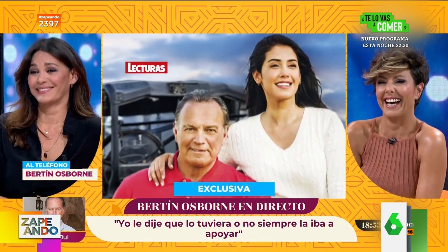 Bertín Osborne ha entrado en directo en el programa de Sonsoles Ónega para hablar de su nueva paternidad junto a Gabriela Guillén, la joven de 32 años con la que ha salido en los últimos meses: "Ha sido una chavala estupenda y la relación ha sido de varios meses cojonudos".