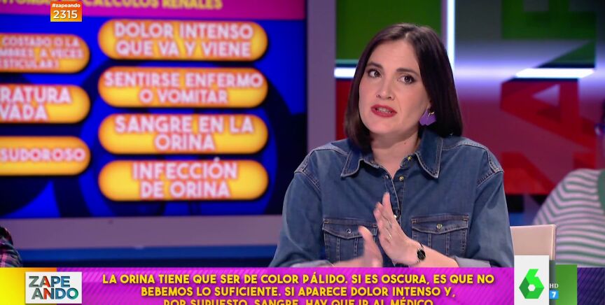 Boticaria García visita el plató de Zapeandopara resolver todas las dudas que tienen los zapeadores sobre los cálculos renales o, lo que es lo mismo, piedras en el riñón. "¿Cómo podemos saber si tenemos una piedra en el riñón? ¿Se puede saber antes de que eso te duela como para querer morir?", se interesa Dani Mateo, a lo que la experta en farmacia responde: "Es posible que uno no se entere porque si son pequeños se orinan sin molestia. De hecho, normalmente son tan pequeños que se pueden expulsar con la orina", explica.