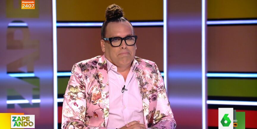 Torito Quique se sienta a la mesa como colaborador de Zapeando y Dani Mateo le recuerda el reto al que se enfrenta esta tarde: "Le hemos tenido que cortar las astas porque va a estar con nosotros todo el programa. Hoy es el torito enamorado de la luna", espeta.