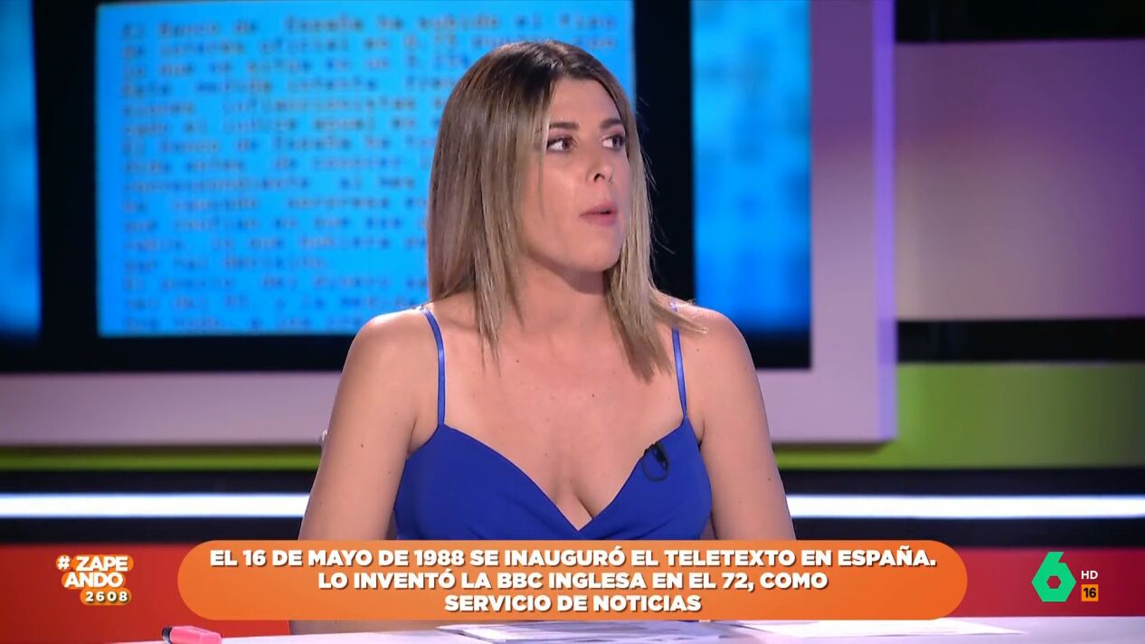 "Te puedo decir 221, resultados de la ACB, 222, clasificación, a día de hoy me acuerdo de los números del teletexto", explica Quique Peinado. Para Valeria Ros, el mejor horóscopo es el del teletexto, "lo veo con mi abuela", confiesa. Por su parte, Isabel Forner, la más joven de los zapeadores, afirma que cuando en su televisor aparecía el teletexto siempre la apagaba. "Pensaba que era un error", cuenta.