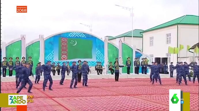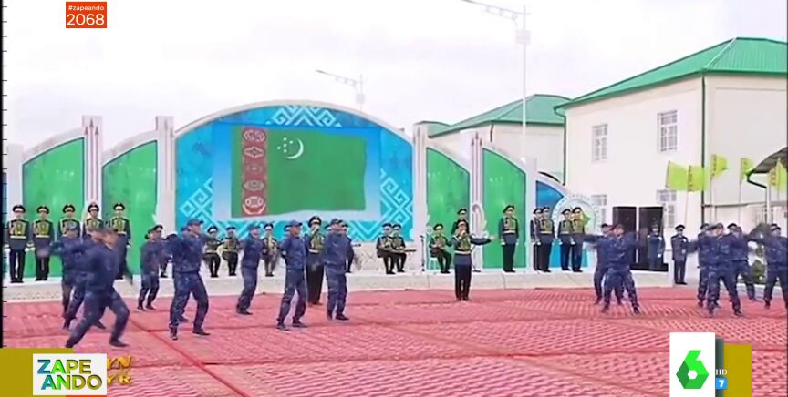 "La fama se la lleva Corea del Norte, pero hay más países que adoran fuerte a su líder. Uno es Turkmenistán, donde un grupo de militares han recibido bailando al presidente en la inauguración de un complejo residencial", ha señalado María Gómez, justo antes de dar paso a las imágenes de la coreografía digna de fama.