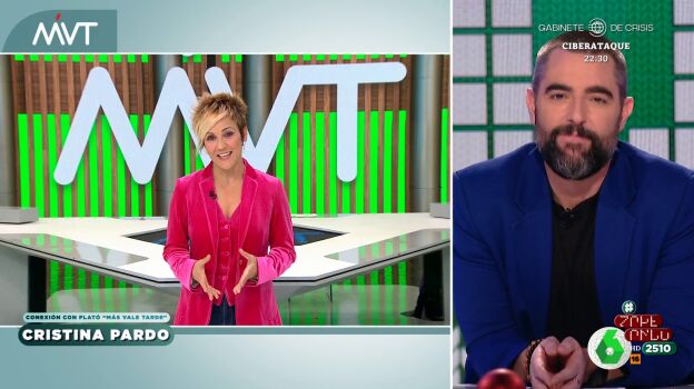 "Me veo mejor que con 20 años", ha añadido Pardo. "Estas esperando a que te lleguen unas pilas", ha contestado Dani Mateo en tono de broma, algo que hace referencia a las pistas de Cristina Pedroche sobre su vestido.