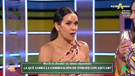 Hoy en Zapeando, Maya Pixelskaya, Miki Nadal, Dani Mateo, Graciela Álvarez y Cristina Pedroche comprueban por sí mismos los sorprendentes sabores que desvela la tiktoker Mercé Bona, entre ellos la combinación de uvas y cacahuetes que, teóricamente, da como resultado un sabor a chocolate.