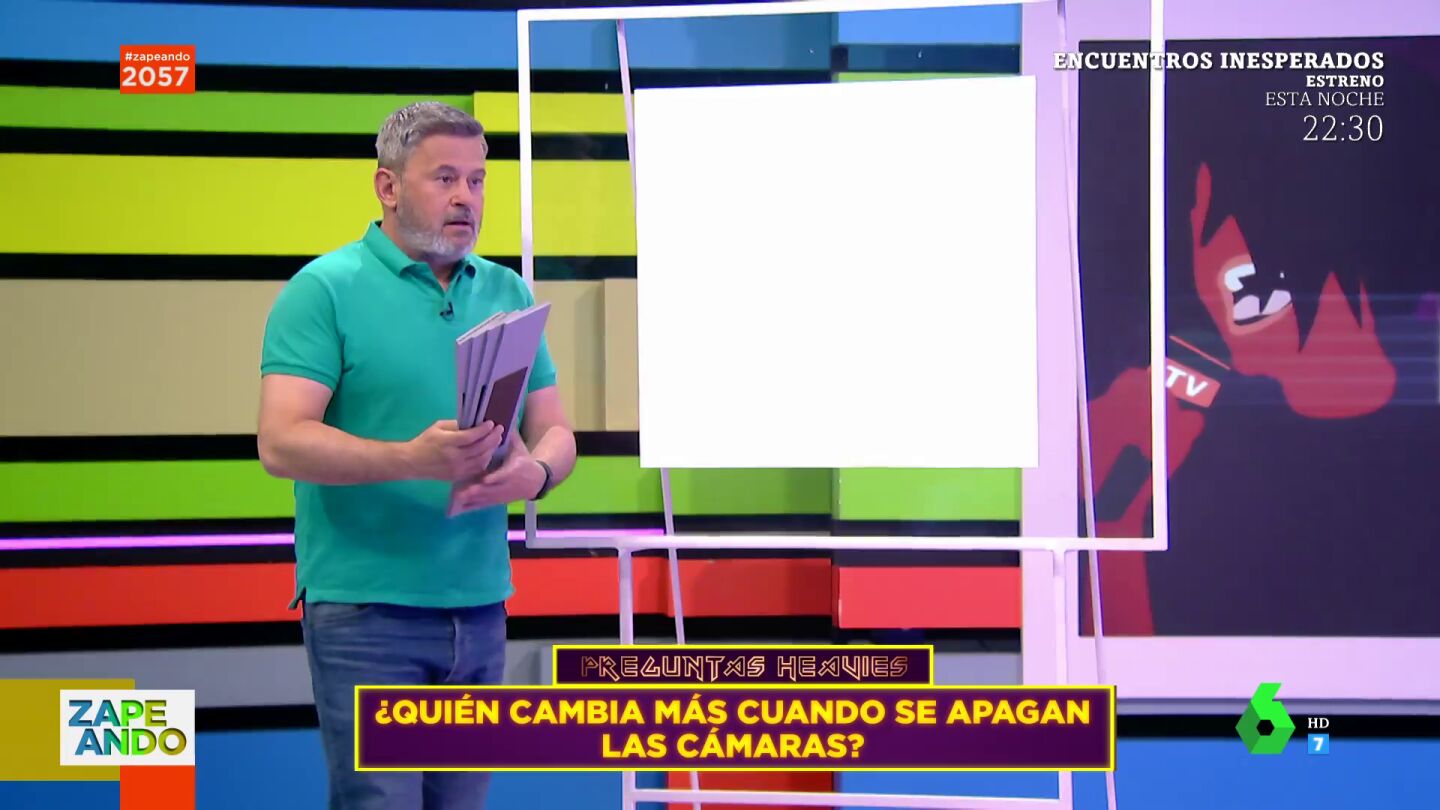 Vuelven las preguntas heavys a Zapeando, un divertido reto en el que los zapeadores deben responder a preguntas personales que les hacen los espectadores. Por ejemplo, en el vídeo principal de esta noticia, un joven pregunta a Miki Nadal quién de sus compañeros cambia más cuando las cámaras no están presentes.