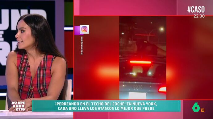 Tras ver un vídeo de una mujer perreando en el capó de un coche en Nueva York, Cristina Pedroche compartió una divertida anécdota de su juventud con sus compañeros de Zapeando. La zapeadora confesó que, cuando era joven, solía hacer cosas similares. "Yo cuando era joven hacía esas cosas. Ahora ya no porque a esas horas estoy en casa con la 'Vaca Lola'", comentó entre risas.