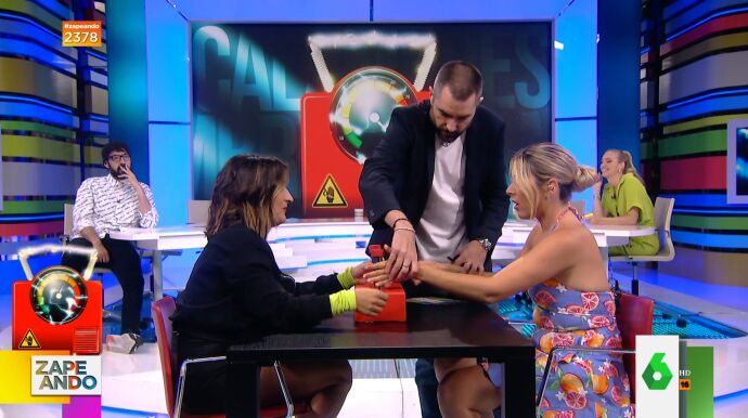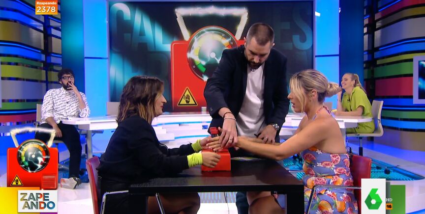 Valeria Ros y Susi Caramelo se enfrentan en el juego de los calambrazos, donde demuestran cuánto saben la una de la otra. Pero Dani Mateo se la juega por hacer trampas y les da una descarga a las dos: "¡Qué me electrocuto, tío!".