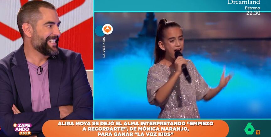 El presentador de Zapeando, Dani Mateo, ha quedado impresionado por la actuación de Alira Moya en la final de La Voz Kids, donde interpretó 'Empiezo a recordarte' de Mónica Naranjo.