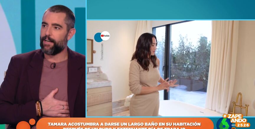 Dani Mateo tampoco puede evitar reaccionar a las palabras de la socialité: "Si a Tamara lo que le encanta es darse un baño después de un duro día de trabajo, pues no la va a estrenar", expresa contundente, sin poder evitar meterse con ella. "¿Pero tú crees que todo eso se paga solo?", espeta Ares Teixidó, que bromea con que se lo ha ganado "con el trabajador de su frente".