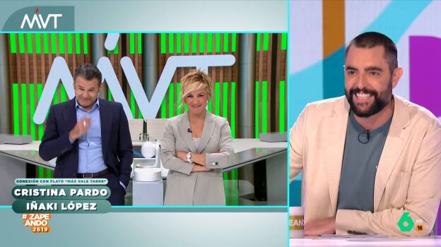 Dani Mateo conecta, como cada día, con el plató de Más Vale Tarde donde le esperan Iñaki López y Cristina Pardo con la última hora de la actualidad informativa. "Estoy deseando saber qué opinan de tu look, Torito, la pareja de presentadores más guapa de la televisión", comenta el catalán.